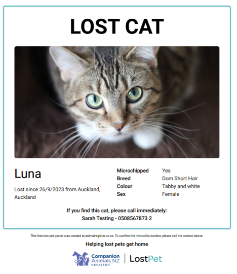 Keeping your information up to date means that if your pet ever goes missing, as soon as they are scanned by one of our Approved Users around NZ, you can quickly be contacted to arrange your pets return home.