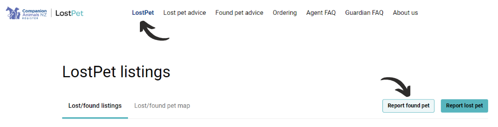 If your pet is registered on the NZCAR, you can also report your pet as found from your 'my registered pets' tab on your account. You only need to report found in one place, this will update both their NZCAR registration and expire their LostPet listing.