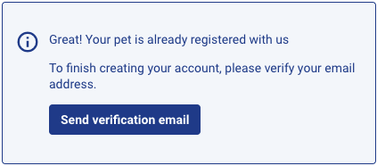 Clicking "send verification email" will send an email to the address loaded as the pet's primary contact (If you don’t receive an email, Contact us quoting your pets microchip number and our support team can help to resolve this for you).